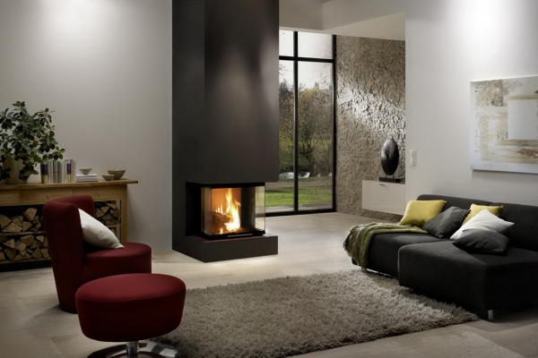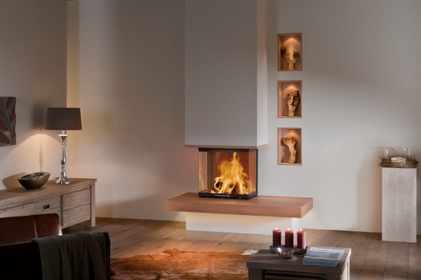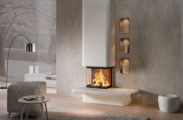 Wkład kominkowy z szybą o kształcie U. Najmniejszy z serii Arte U - szrokość wszystkich trzech szyb 500mm.