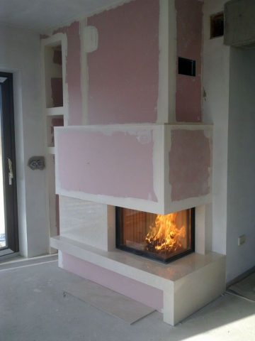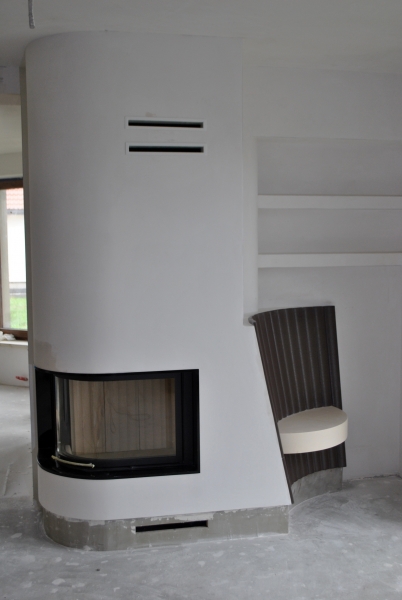 Narożny wkład kominkowy z łukowym naroznikiem. Często wykorzystywany w konstrukcjach kominkowych gdzie ważne są okrągły kształty. Wkład posiada szybę przesuwaną do góry. Do wkładu doprowadzone jest powietrze z zewnątrz.