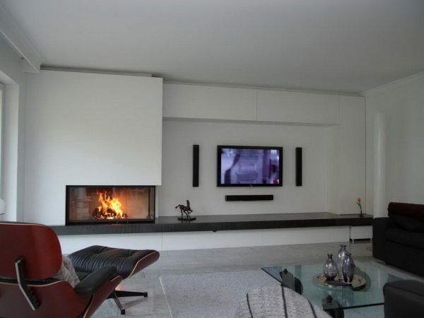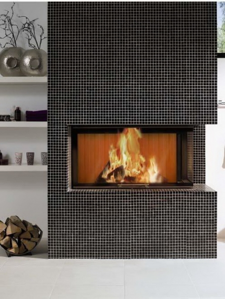 Wkład kominkowy z szybą narożną panoramiczną o wymiarach 100x41. Idealnie nadający się do większych pomieszczeń gdzie chcemy eksponować ogień - ustawiając wkład w narożniku. Szyba bezramkowa z systemem samodocisku szyby.
