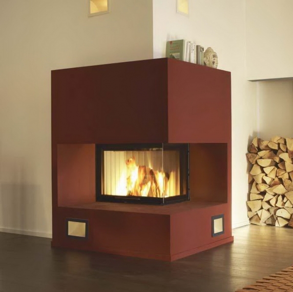Wkład kominkowy z boczną szybą o wzorcowych proporcjach. Szerość szyby 67x45 z boku. Szyba wykonana w technologii bezramkowej przesuwana do góry. Doprowadzenie powietrza z zewnatrz, pod ruszt (pierwotne) oraz w górnej części pieca (wtórne).